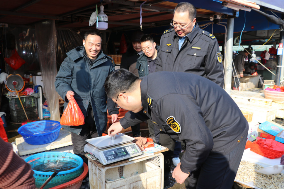 正在平易近生计量方面,以农贸市场肉类、水产、禽类发卖摊位为沉点,利用尺度砝码现场校准电子计价秤,严查计量器具精确度、缺斤少两等行为。